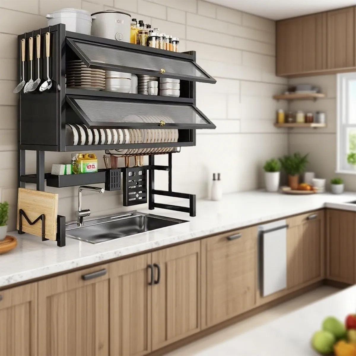 Doble Capacidad: Seca platos, vasos, ollas, sin ocupar espacio en tu mesón.